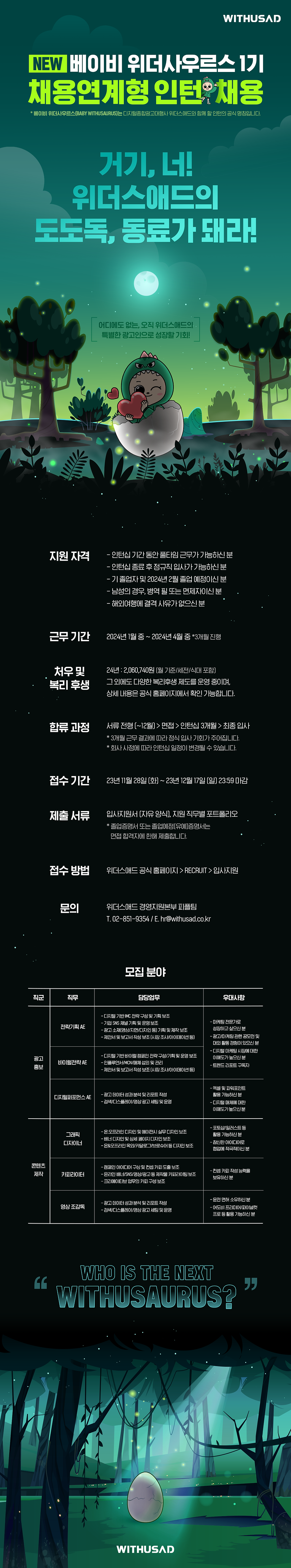 [위더스애드] 디지털종합광고대행사 (주)위더스애드 광고홍보학과 채용연계형 인턴십(~12/17)